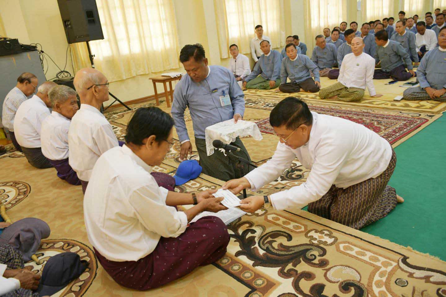 နေပြည်တော်စည်ပင်သာယာရေးကော်မတီ ဥက္ကဋ္ဌ၊ မြို့တော်ဝန် ဦးကံမြင့်သန်း နေပြည်တော်စည်ပင်သာယာရေးကော်မတီ စည်ပင်အိမ်ရာဝင်းနှင့် ရွှေနံ့သာနေ့စားအလုပ်သမားအိမ်ရာတို့မှ သက်ကြီးအဘိုးအဘွားများအား ပူဇော်ကန်တော့ပွဲအခမ်းအနားသို့ တက်ရောက်