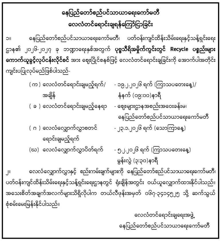 စိတ်ပါဝင်စားသည့်လုပ်ငန်းရှင်/ကုမ္ပဏီများအားဖိတ်ခေါ်ခြင်း